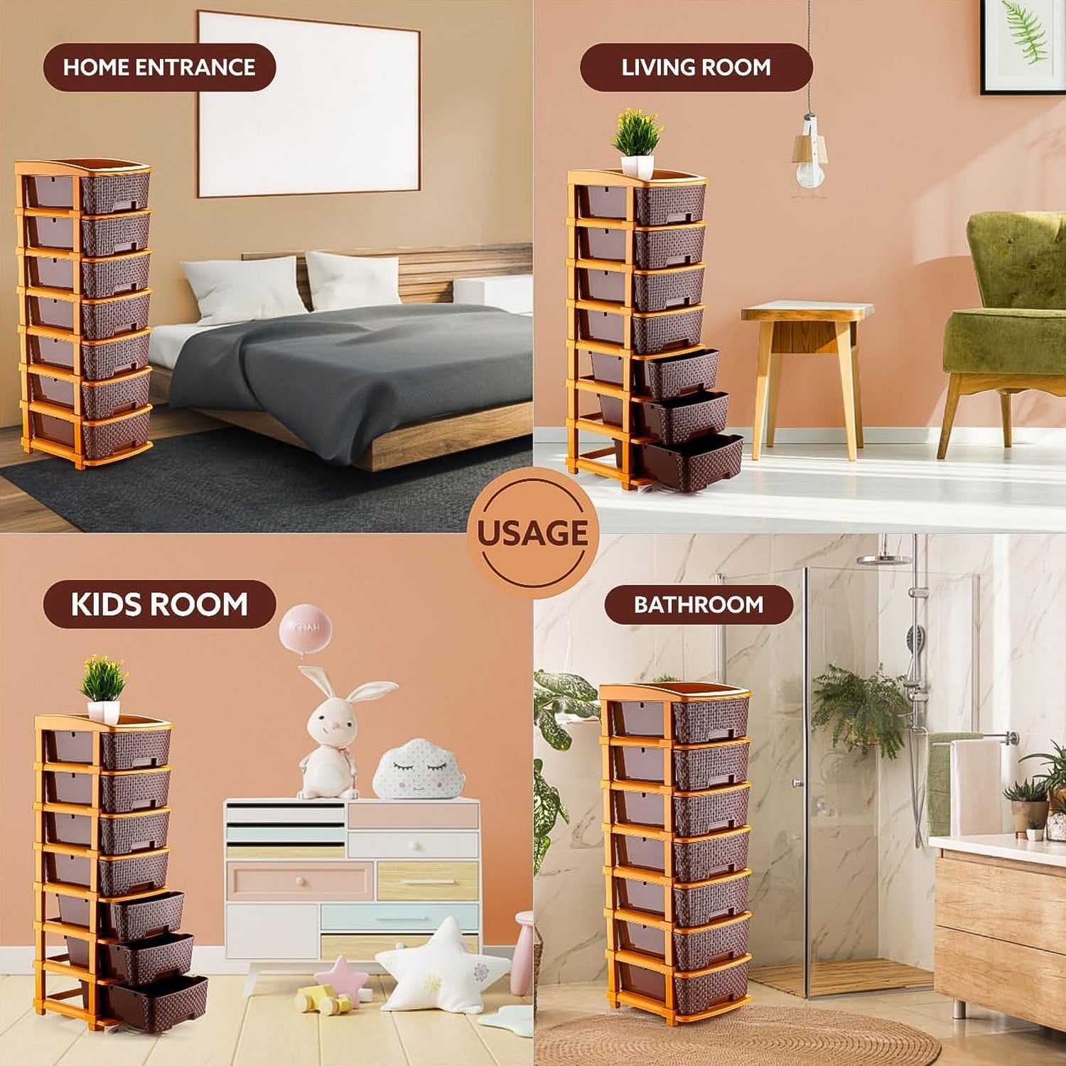 Declutter your space in style with this 7-Layer Multipurpose Plastic Storage Drawer Unit, featuring a sleek woven-style texture and durable plastic construction. Designed to provide smart vertical storage, this drawer organizer is ideal for organizing clothes, toys, office supplies, accessories, and more. Its rich brown drawer faces with translucent panels and vibrant frame create a modern look that blends seamlessly into any room. Each drawer glides smoothly, offering easy access while keeping your belongings dust-free and organized. This is your go-to solution for efficient and elegant home storage.