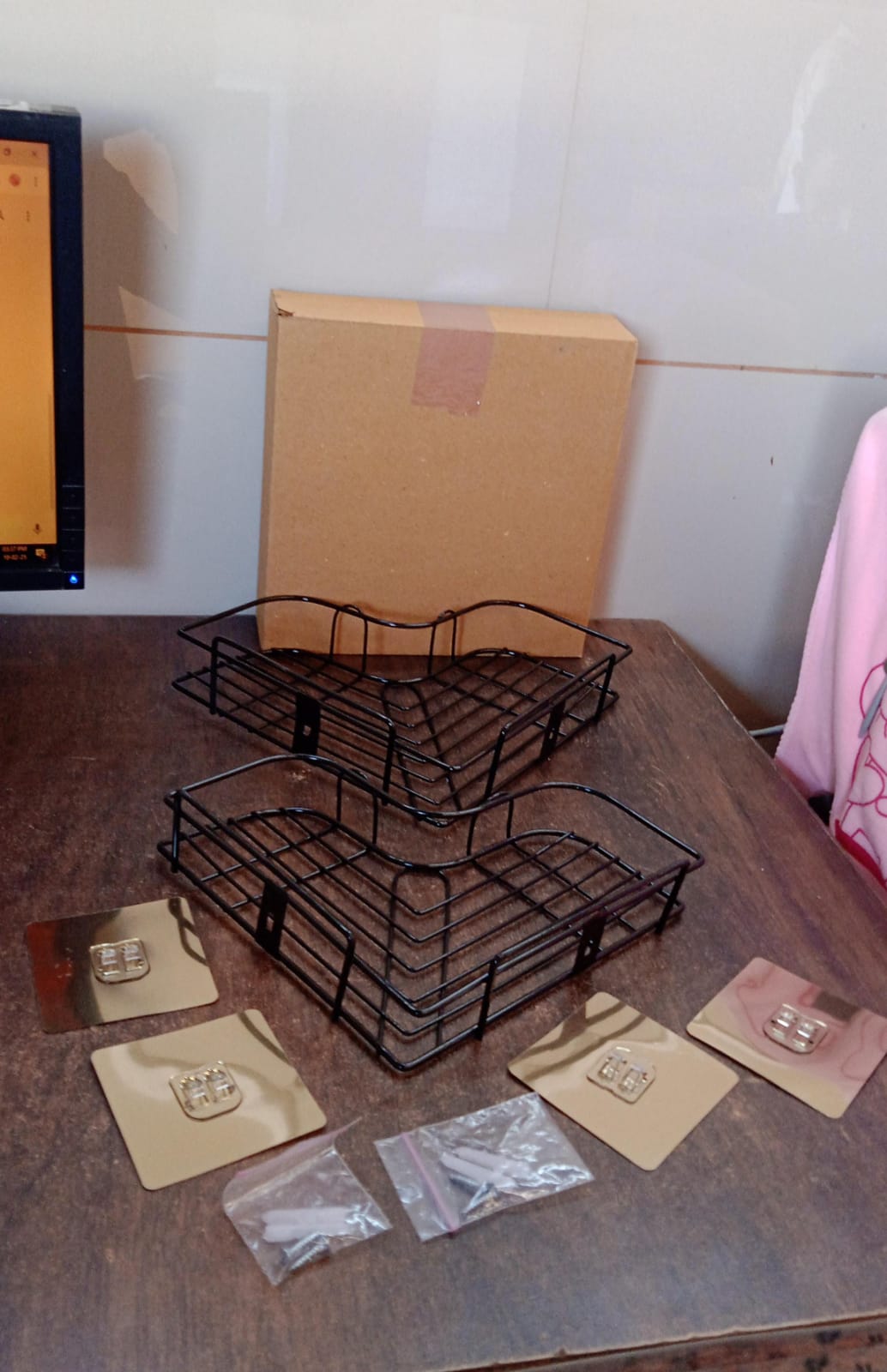 corner shelf rack , bathroom organizer shelf , hanging corner rack , shower storage shelf , bathroom storage , kitchen organizer , storage solution for small spaces , black iron corner rack , bathroom wall basket , metal triangle rack
